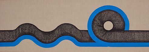 At the core of JONA's creative process lies repetition—an approach she likens to a meditative chant. Through the meticulous layering of ink strokes, she constructs rhythmic, almost architectural patterns that convey a sense of controlled fluidity. This deliberate repetition allows her to explore notions of time, space, and transformation, turning each canvas into a visual meditation.